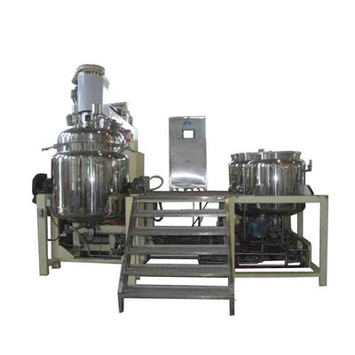 تحتوي الماكينة على خلاط ثلاثي ، وغطاء رفع هيدروليكي ، وخلاط تجانس عالي السرعة (السرعة 0-3500r / min ، وتنظيم سرعة التردد) وخلاط مكشطة منخفض السرعة (السرعة 0-40r / min ، تنظيم سرعة التردد).يتم استخدام خلاط استحلاب دوامة القطع السريع في جزء المجانس ، والذي يمكن أن يتكشط بسرعة منخفضة ويمزج ويتحاضن تلقائيًا إلى أسفل وجدار الغلاية.تقوم الآلة بسحب مادة المسحوق عن طريق الفراغ من أجل منع تطاير المسحوق.يتم تشغيل إجراءات العمل بأكملها في حالة الفراغ من أجل منع تكون المواد في شكل فقاعة بعد المزج عالي السرعة والوصول إلى طلب الصرف الصحي والتعقيم.تم تجهيز نظام التنظيف CIP في هذا النظام.