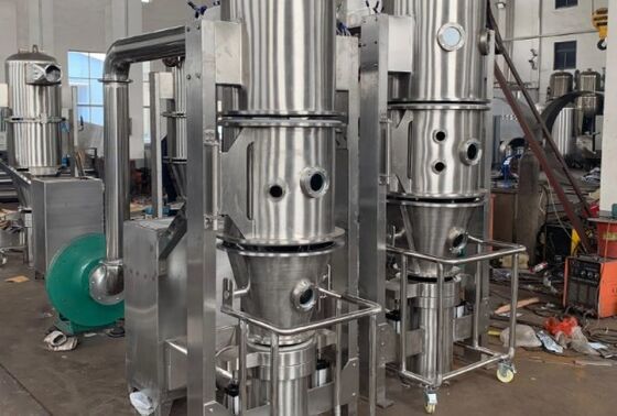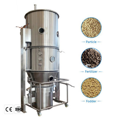 تكون جزيئات مسحوق المواد في حالة مميعة حلقية في حاوية المواد الخام (طبقة مميعة).بعد التسخين المسبق وخلطه بواسطة الهواء الساخن بعد التنقية ، يتم رش محلول المادة الرابطة في الانحلال ، بحيث يتم تجميع العديد من الجسيمات في تكتلات تحتوي على مادة رابطة.